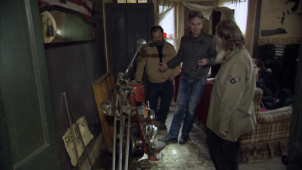 Mike Wolfe and Frank Fritz assess a large collection of sideshow memorabilia