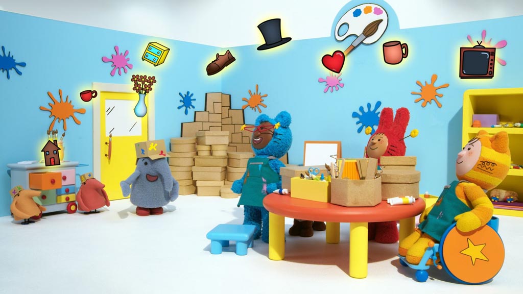 Pockets, Giggle and Spin make a present for Roller Guinea