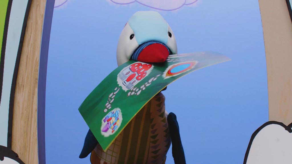 Squiggle and Dotty search for treasure in Dotty's garden