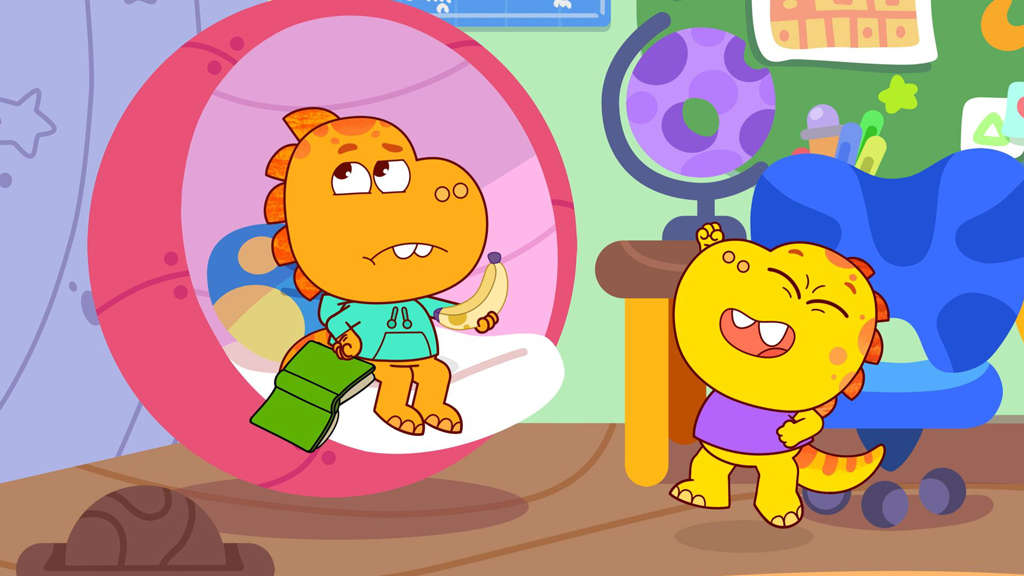 Children's show in which Monkey and the Milkshake! presenters solve clues and find a nursery rhyme to sing, beginning with Five Little Speckled Frogs