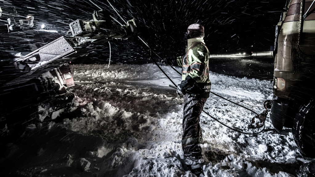 Documentary following snowplough teams and RAC patrols