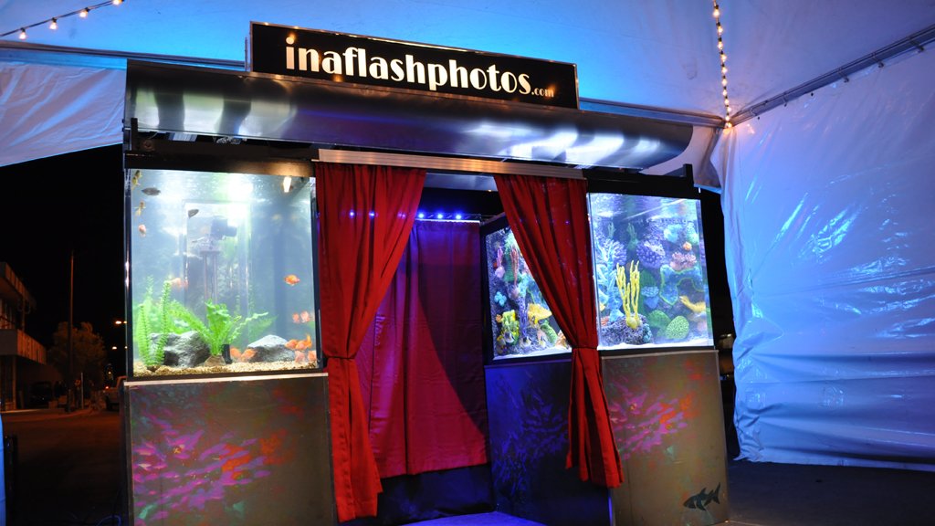 The brothers-in-law Brett Raymer and Wayde King transform a disused photo booth into an aquarium for the Las Vegas First Friday street fair