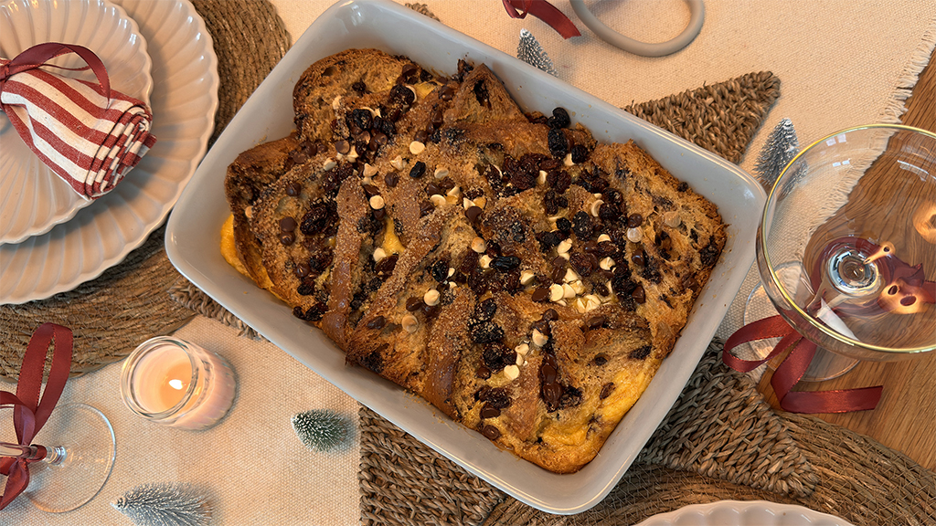 Abigail Niclomhair makes bread-and-butter pudding. Using a chocolate Panettone for that festive flavour, the recipe makes the traditional dessert a special treat