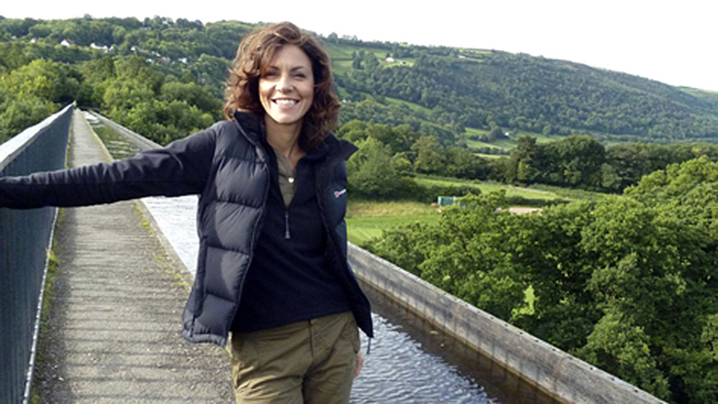 The presenter travels to north Wales, where she examines the 126ft-high aqueduct in Llangollen that was created by Thomas Telford