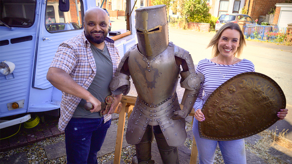 Teams of parents and adult children explore an antiques fair in Staffordshire aided by Izzie Balmer and Nick Hall, while Christina Trevanion breaks out another mystery item