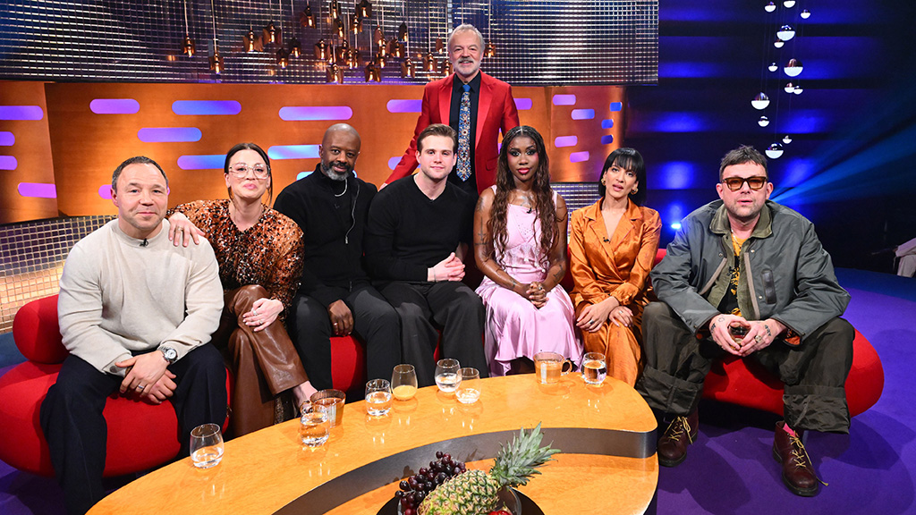 The host catches up with guests Stephen Graham, Kaley Cuoco, Adrian Lester and Leo Woodall. Plus, Gorillaz perform their new single Orange County
