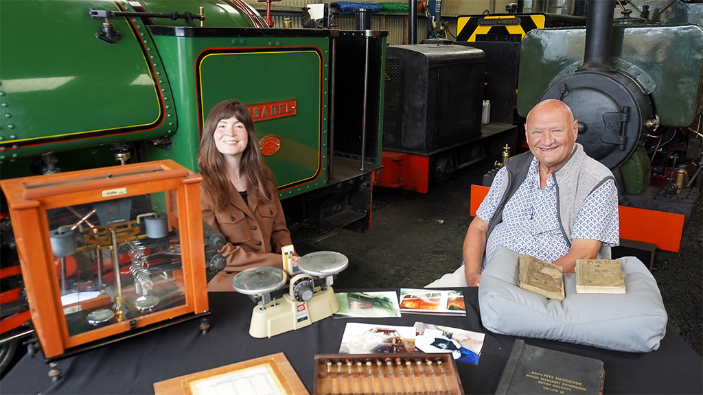 John Cameron and Irita Marriott help the teams explore an antiques fair at Uttoxeter Racecourse, and Natasha Raskin Sharp meets a retired railway chemist