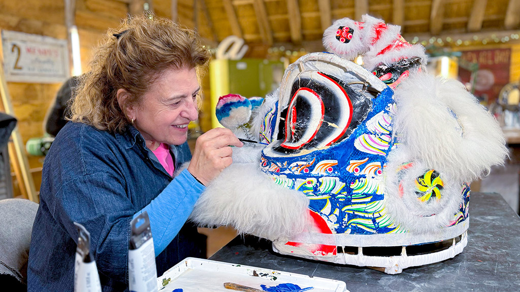 The team restore a ceremonial Chinese lion dance costume, a pair of well-loved traditional beer pumps, two ceramic maquettes and a diamond engagement ring