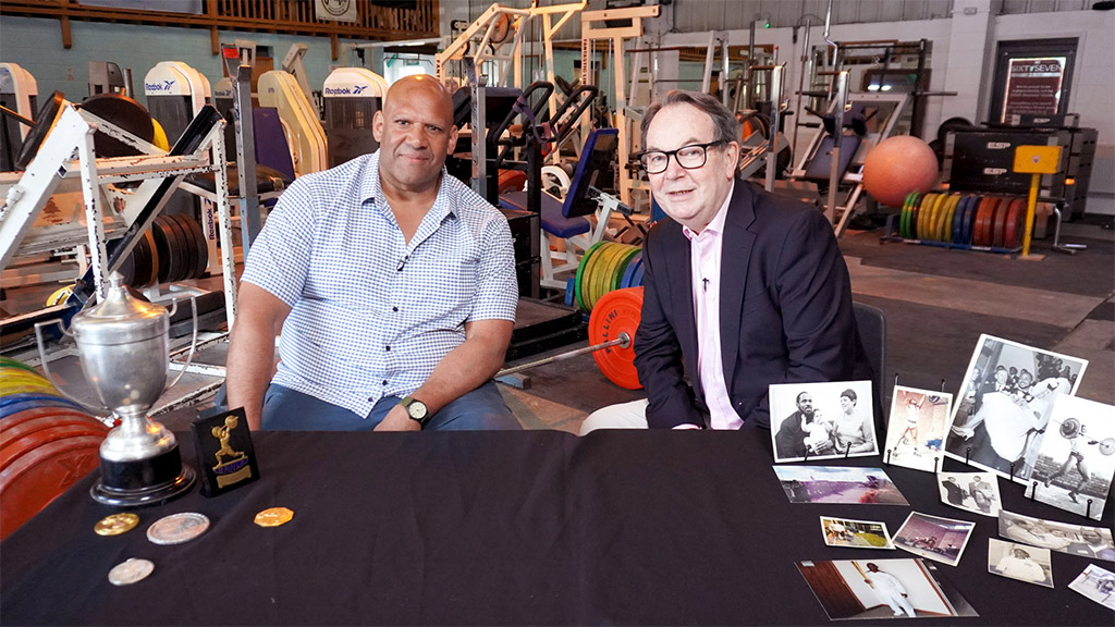 Caroline Hawley and Tim Weeks help the teams search for bargains at Stoneleigh antiques fair to sell in Derby. Eric Knowles meets the son of Jamaican-born weightlifter Louis Martin