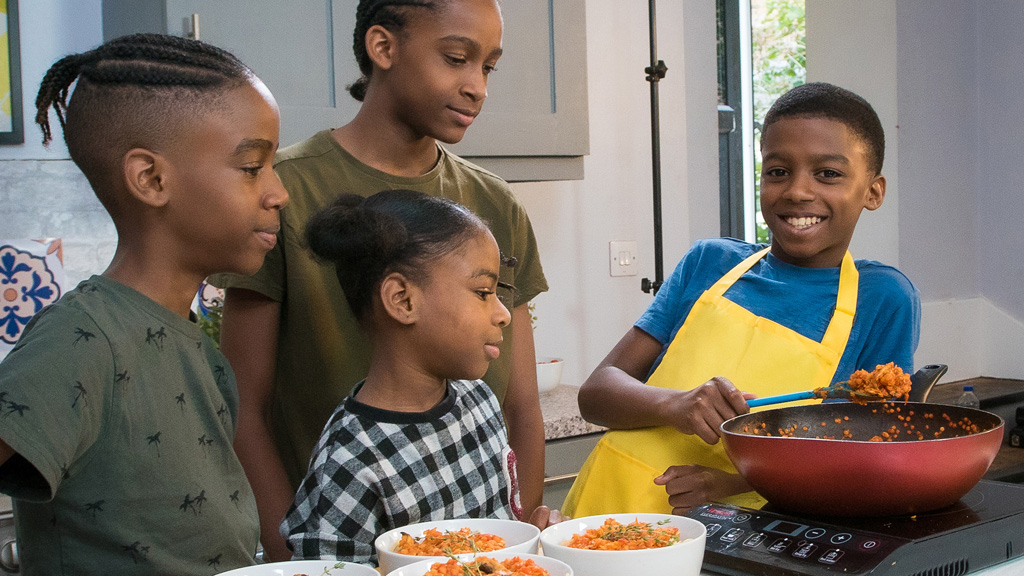 Chef Omari makes his twist on spaghetti bolognese, with his lentil variety being packed with healthy grains, vegetables and spices