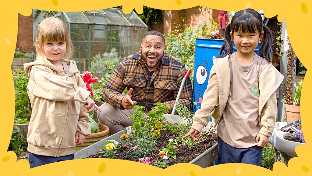 Justin has lots of summer fun with his friends, and Mr Tumble judges the Best Kept Garden