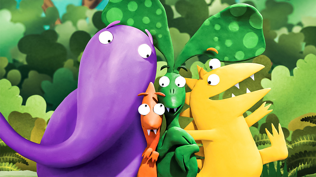 The Teletubbies say 'Eh-oh' to one another in turn and then to the flowers, while the children in Tummy Tales make a friendship circle out of handprints