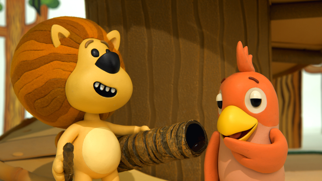 Raa Raa and his friends are looking for funny-noisemakers