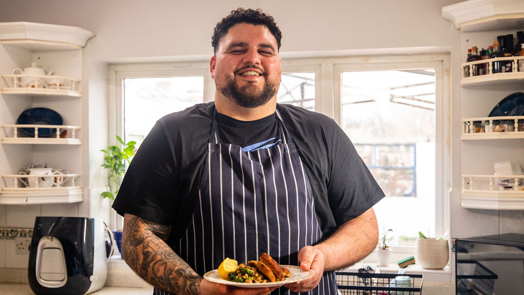 Jamie Oliver shares a recipe for home-made gnocchi in a cheesy bacon and pea sauce, and Chetna Makan demonstrates a budget-busting recipe for yoghurt chicken curry