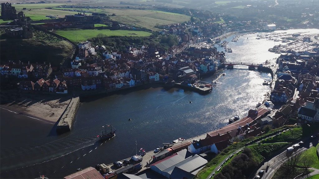 Hugh Bonneville narrates an aerial guide to the North Yorkshire Moors Railway, from the coast at Whitby, across the Yorkshire Moors, to the market town of Pickering
