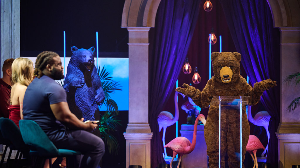 Jimmy Carr hosts this game show in which contestants Mikie, Emma, Zawdie and Charlotte are given every answer with the questions written, literally, as the show is happening