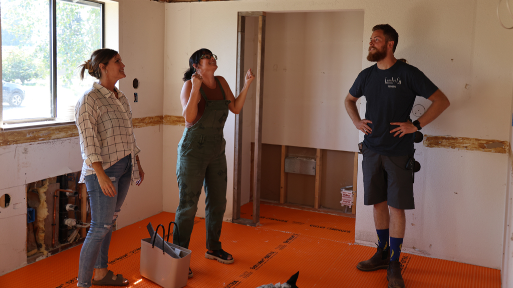 Lyndsay and Leslie bring curb appeal to a confusing rambler that isn't visible from the road. They create an earthy boho feel in the kitchen