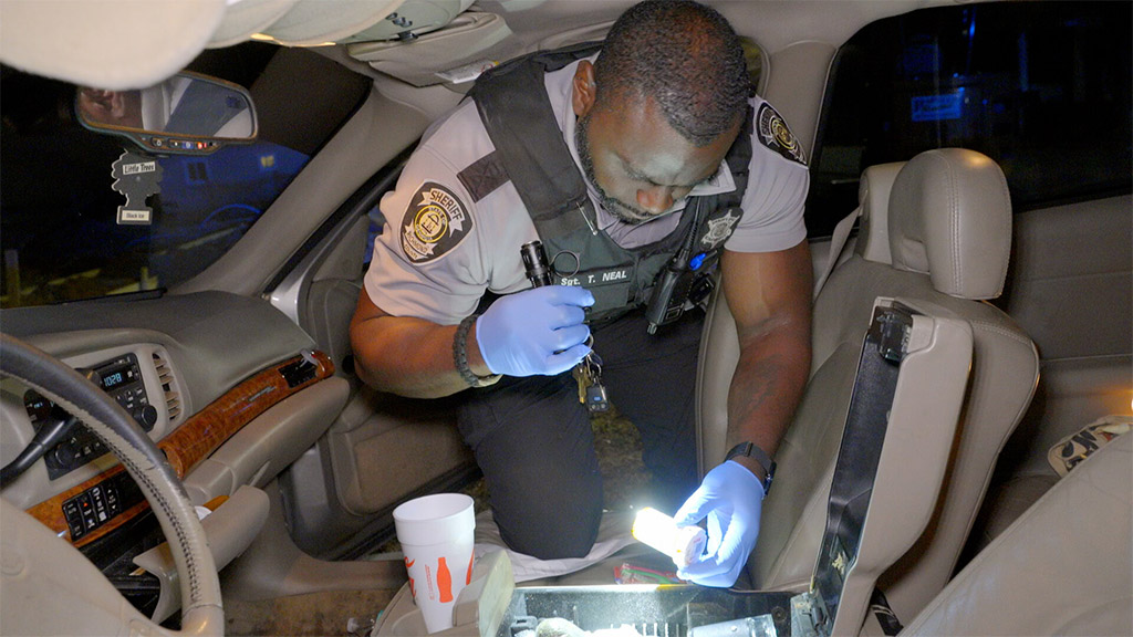 A high-speed chase ends with a sinister discovery in the fugitive's abandoned car
