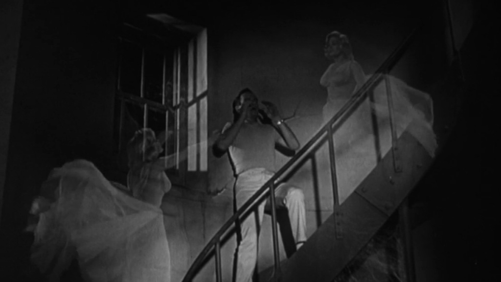 A man preparing for his wedding is haunted by the ghost of his ex, whom he allowed to fall to her death. Horror, starring Richard Carlson and Susan Gordon