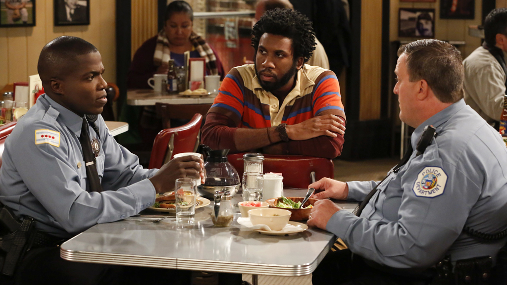 Mike tells Carl he is considering quitting the police force after he gets shot in the backside during a store robbery. Comedy, starring Billy Gardell and Melissa McCarthy