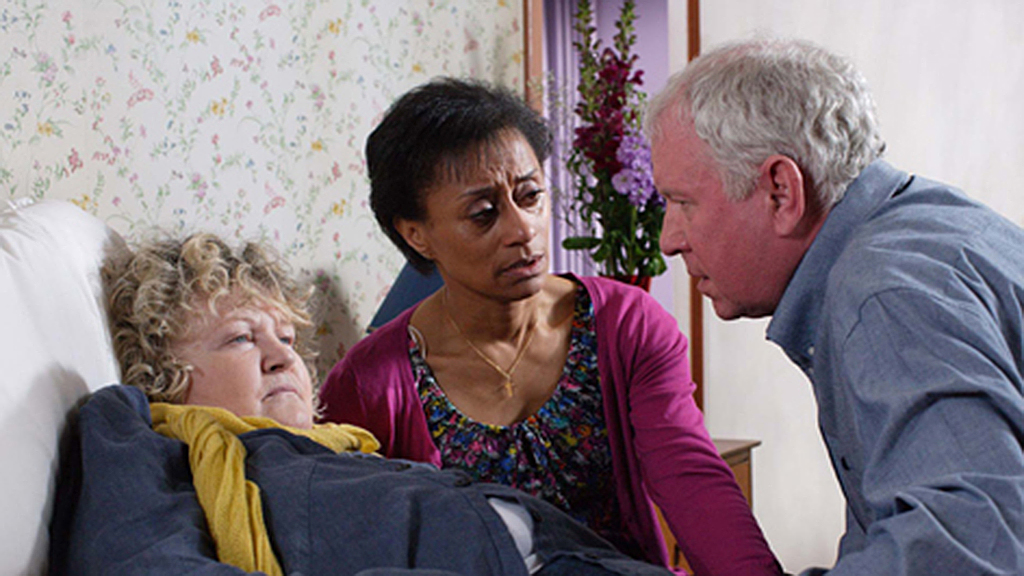 George collapses again, so Ed pulls a few strings to make him a priority case. Diane has fun flirting with a locum doctor and Rosie receives legal papers outlining Sami's plans to sue for custody of the children