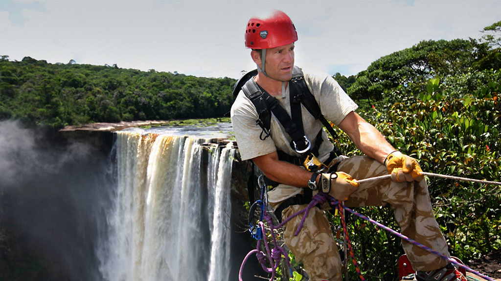 Steve Backshall reaches the summit of a table-top mountain