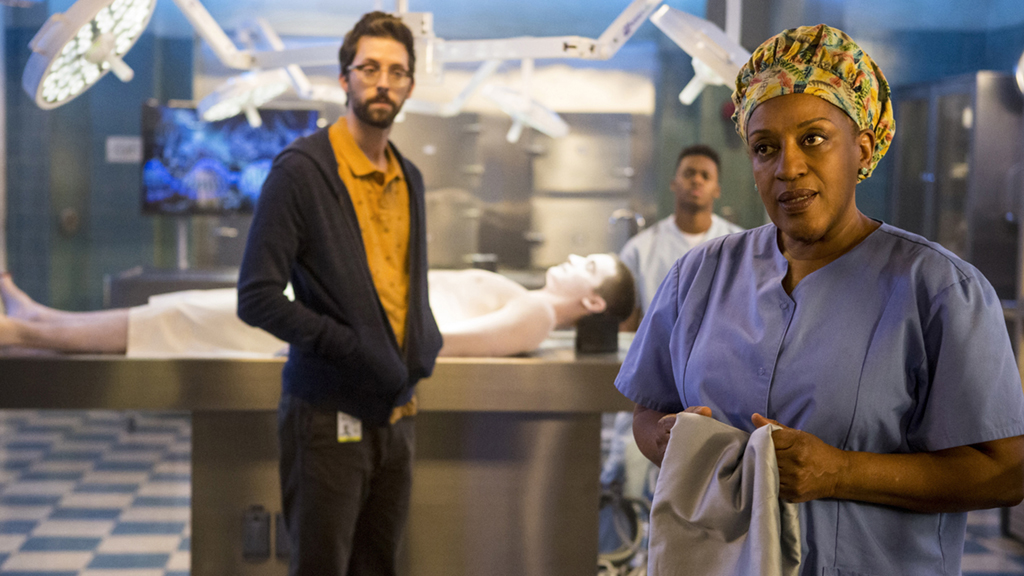 While completing an autopsy on a petty officer believed to have died from natural causes, an armed man enters the morgue and holds Wade and Sebastian hostage