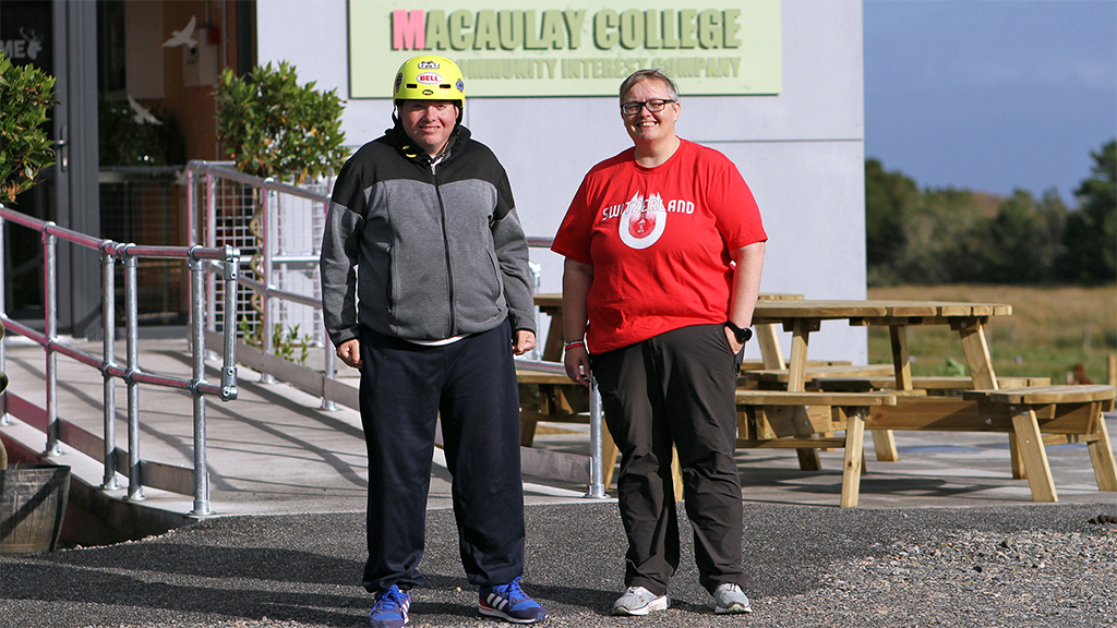 Elin Fflur chats to football coach Malcolm Allen, who earlier played for Watford, Aston Villa, Norwich City, Millwall, Newcastle United and Stevenage Borough